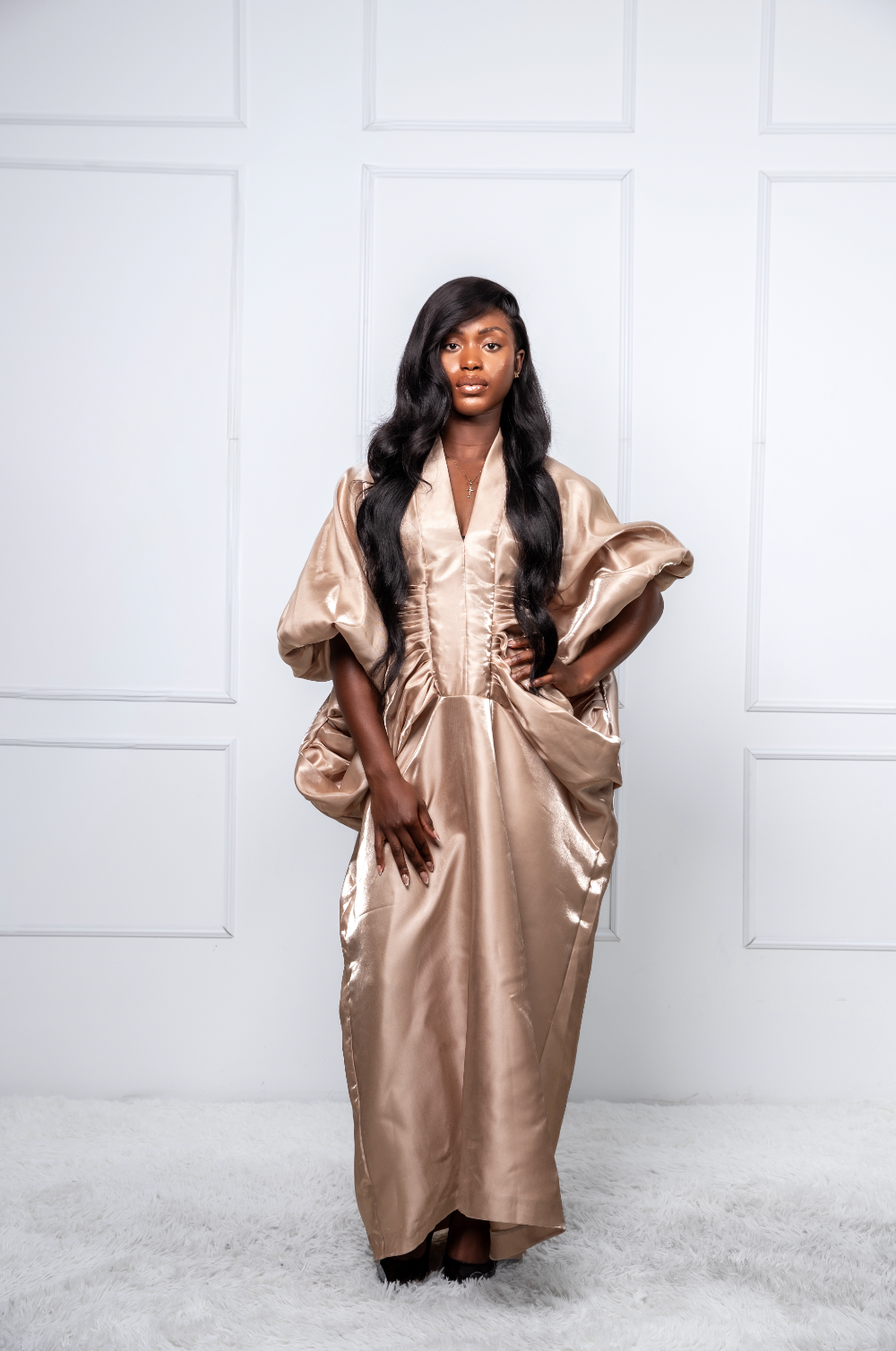 A striking silhouette designed to exude elegance and divine confidence. This statement bubu gown features dramatic gathered sleeves, a structured shawl collar, and a cinched waist that effortlessly balances volume and grace. Handcrafted for the modern-day queen, Shekinah is perfect for special occasions where poise meets presence. A timeless expression of cultural richness and feminine power.