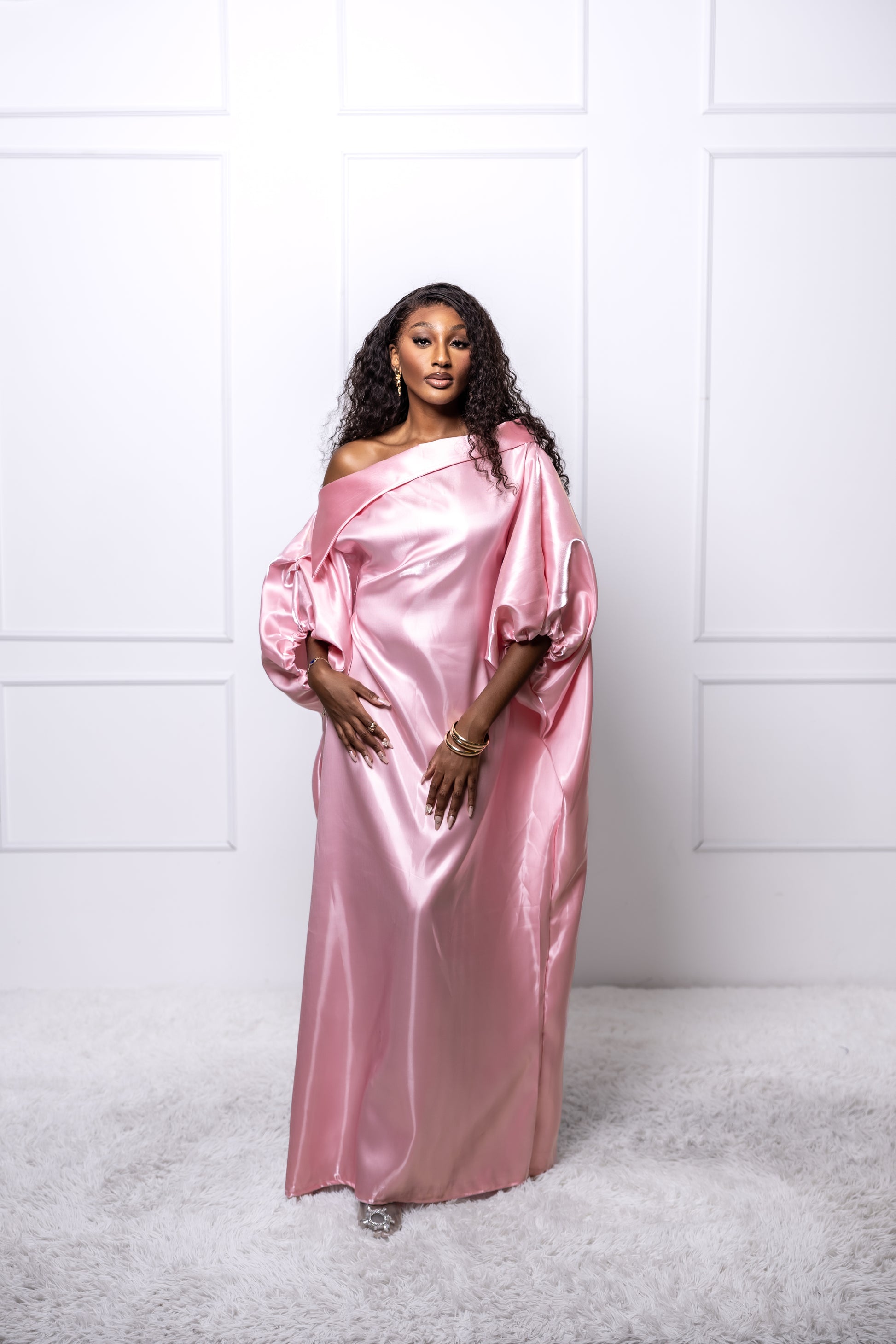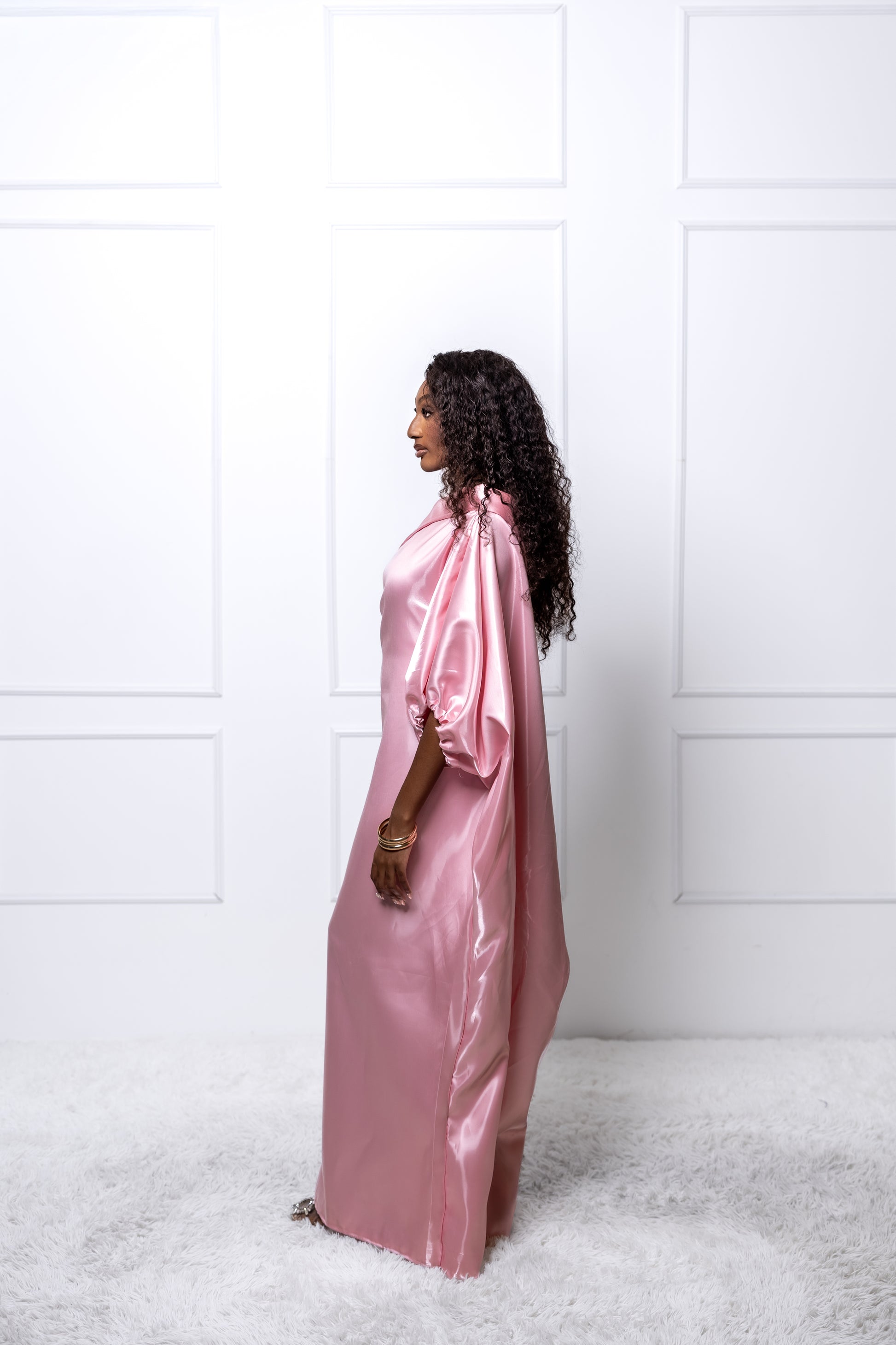 AHOFADI – Pink Liquid Satin Bubu Gown
